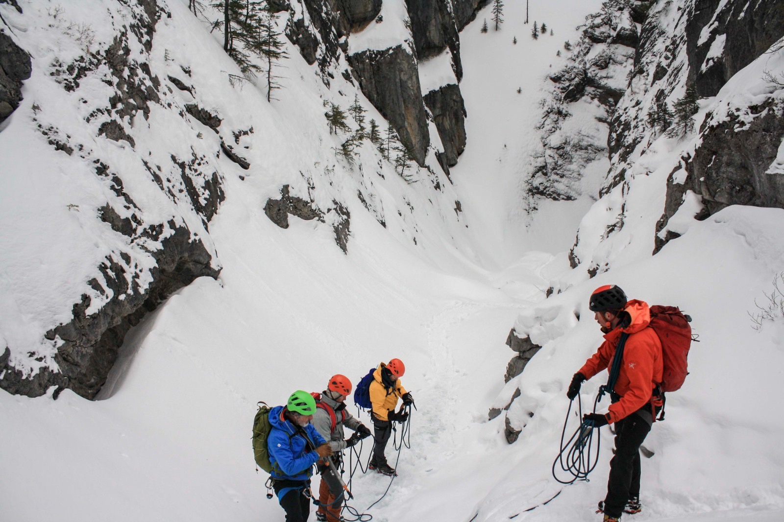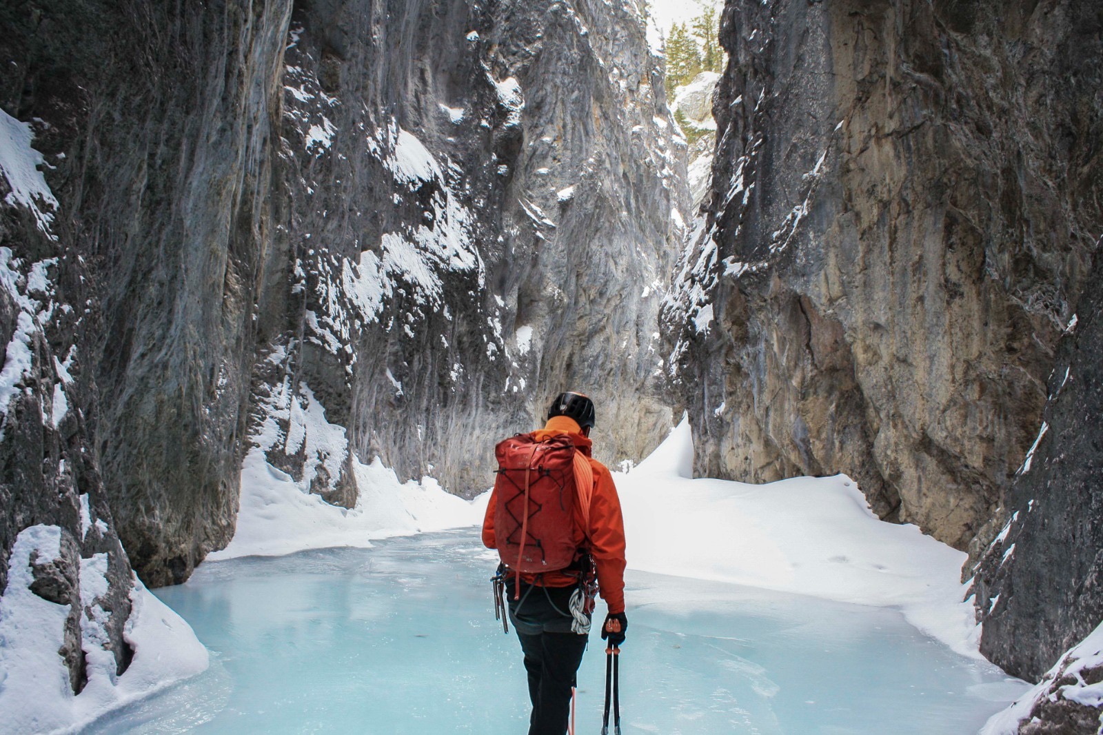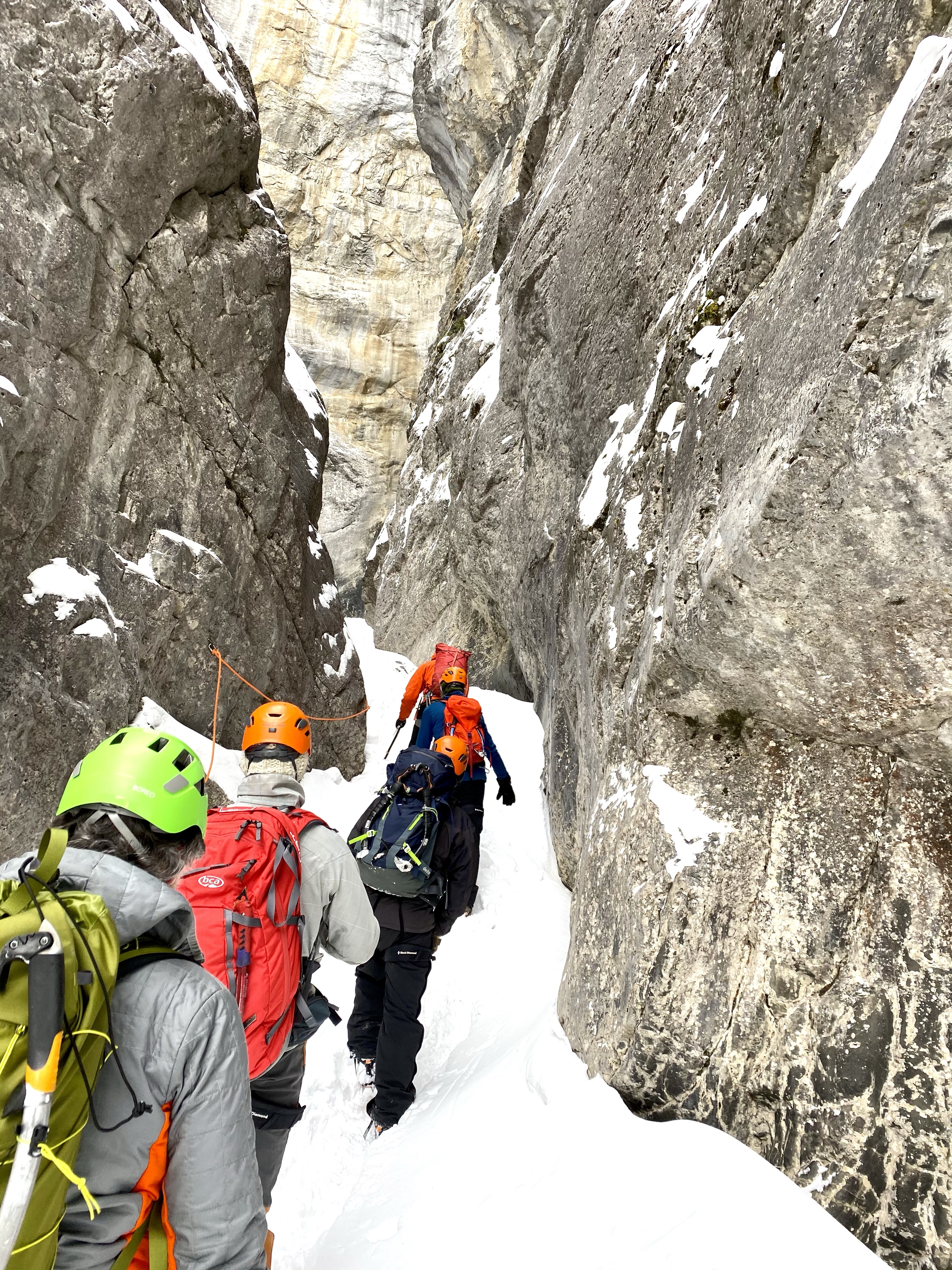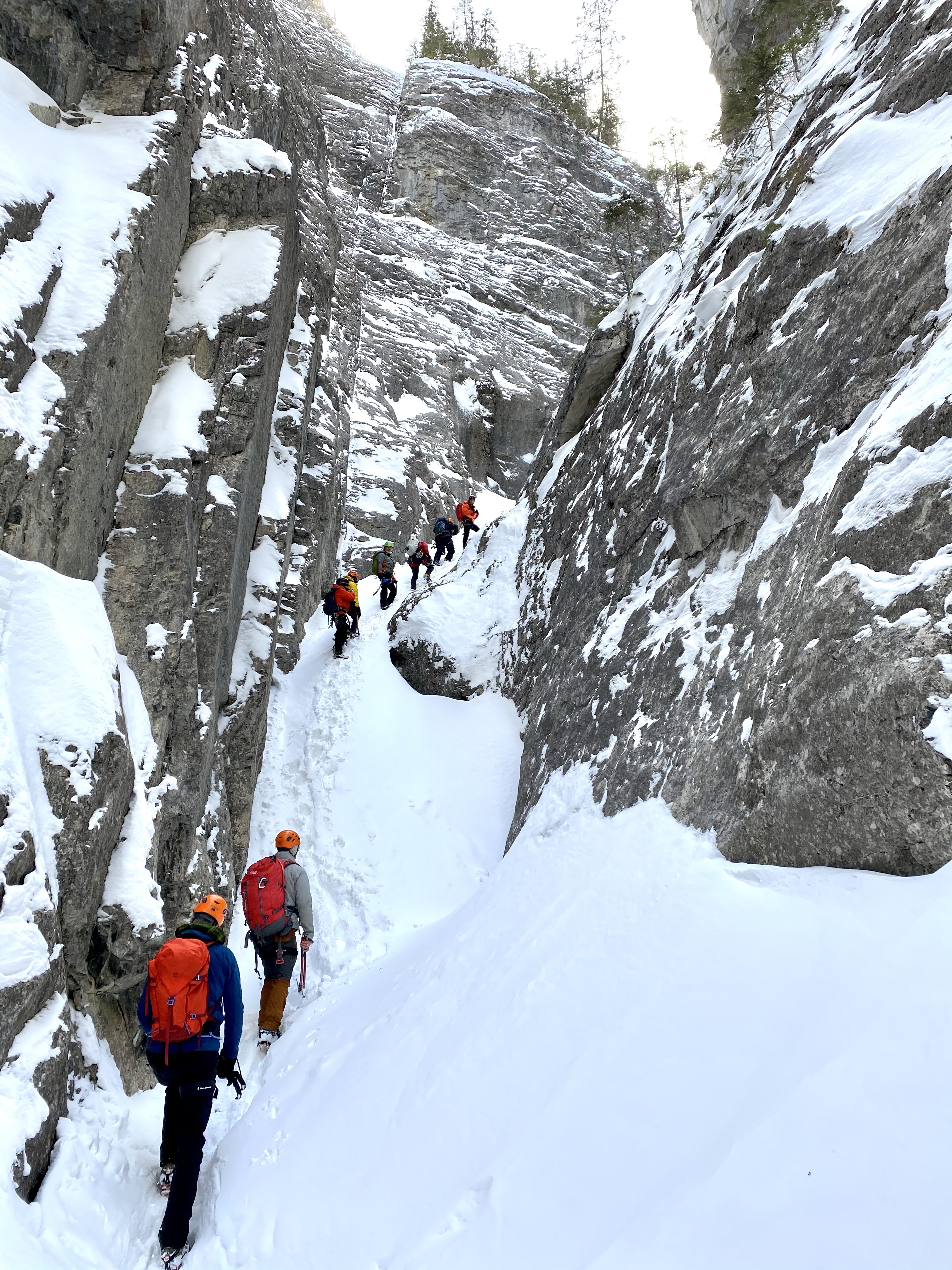 Disclaimer: explore this canyon with qualified guides, there are overhead snow/ice/rock hazards to assess prior to entering the canyon. On February 28th, 2021, our Adventure Club members were guided by Tim Taylor of Girth Hitch Guiding, as well as Pierre Hungr from Galena Mountain Guides. We were joined by up & coming outdoor leaders from Frontier Lodge (who provided our delicious food, accommodations, and gear), Mac Vidal and Tobi Von Butler.